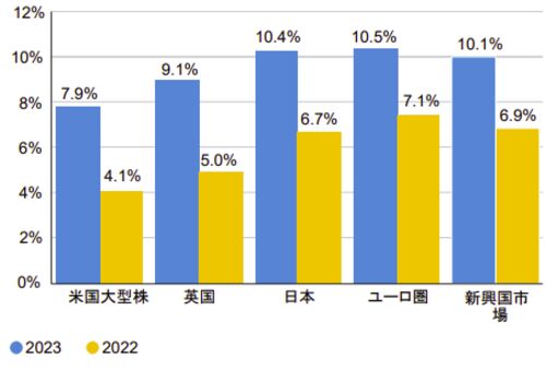 JPモルガンから、今後10~15年の平均リターン予想が公開されました。 代表的な株式の(ドルベースの)リターン予想はこんな感じ。 青色グラフは『2023年に予想した今後10~15年のリターン』で、 黄色グラフは『2022年に予想した今後10~15年のリターン』です…